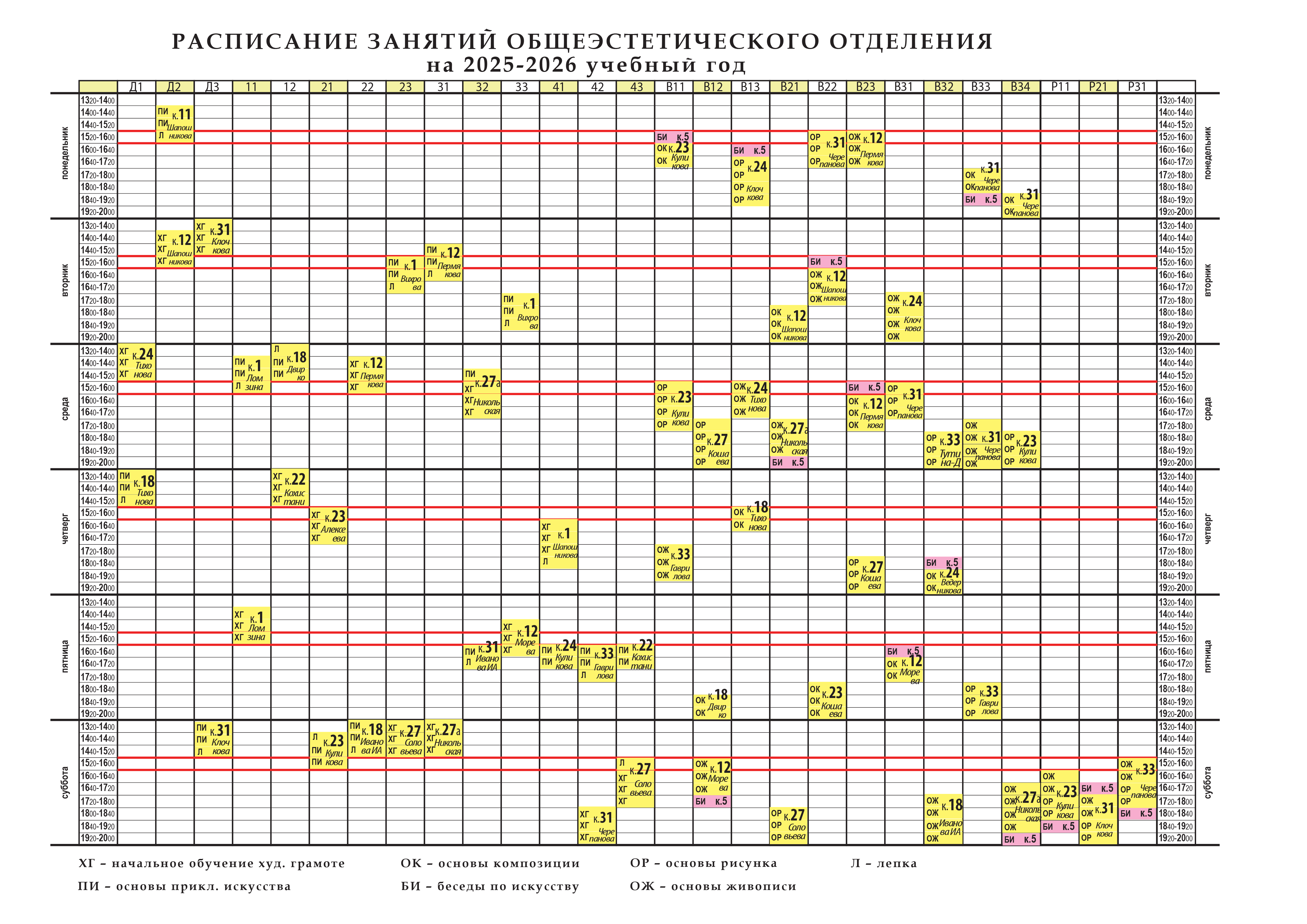 Расписание занятий на 2025-2026 учебный год - на бюджетной основе